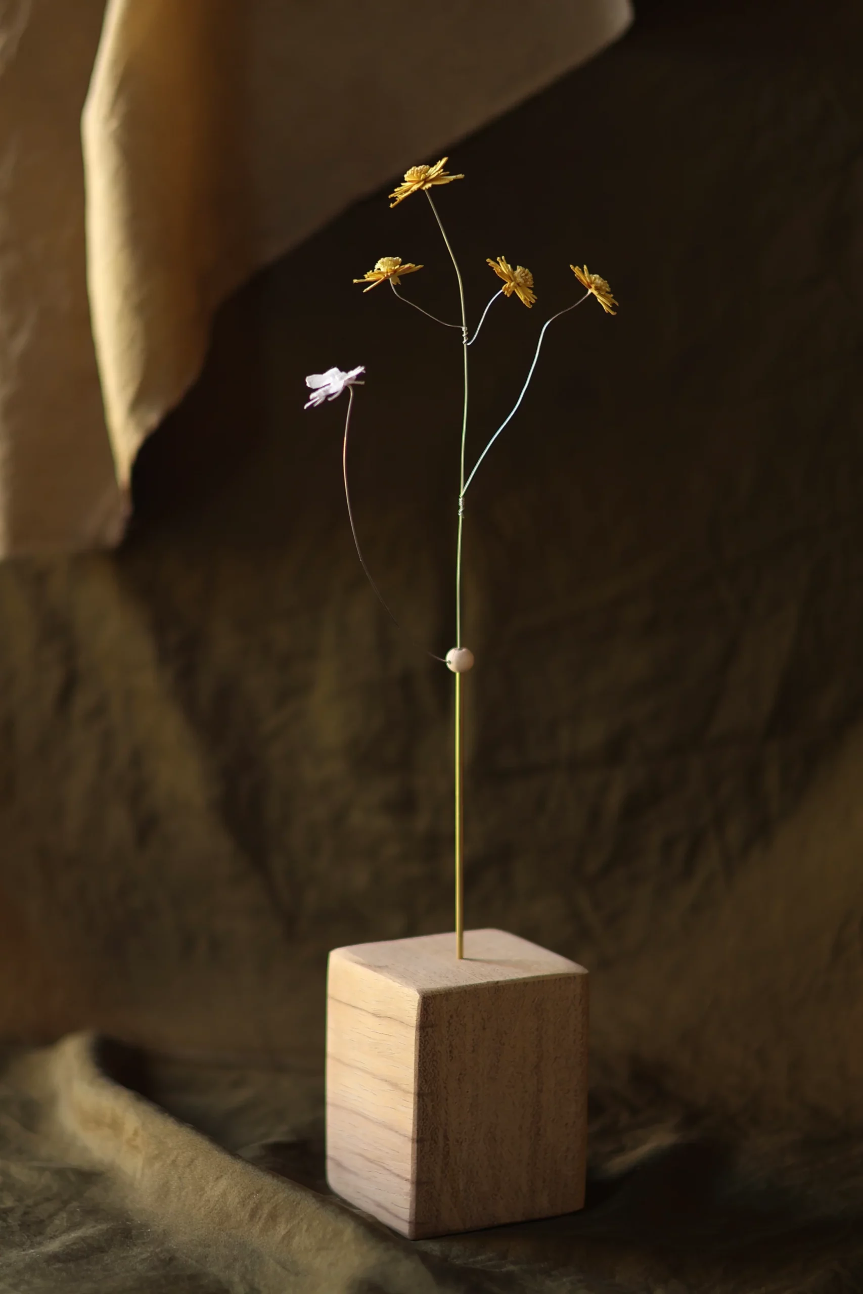 Brecevic’s most recent project, Symphonia, is a limited series of kinetic artworks. Each piece is crafted from recycled, hand-dyed, or upcycled materials. The wooden bases are manually shaped by Brecevic from discarded scraps sourced from a carpentry workshop. Using vegetable ink and recycled materials, and embracing the charming natural irregularities of the wood, she has created a capsule series of five captivating sculptures in motion.