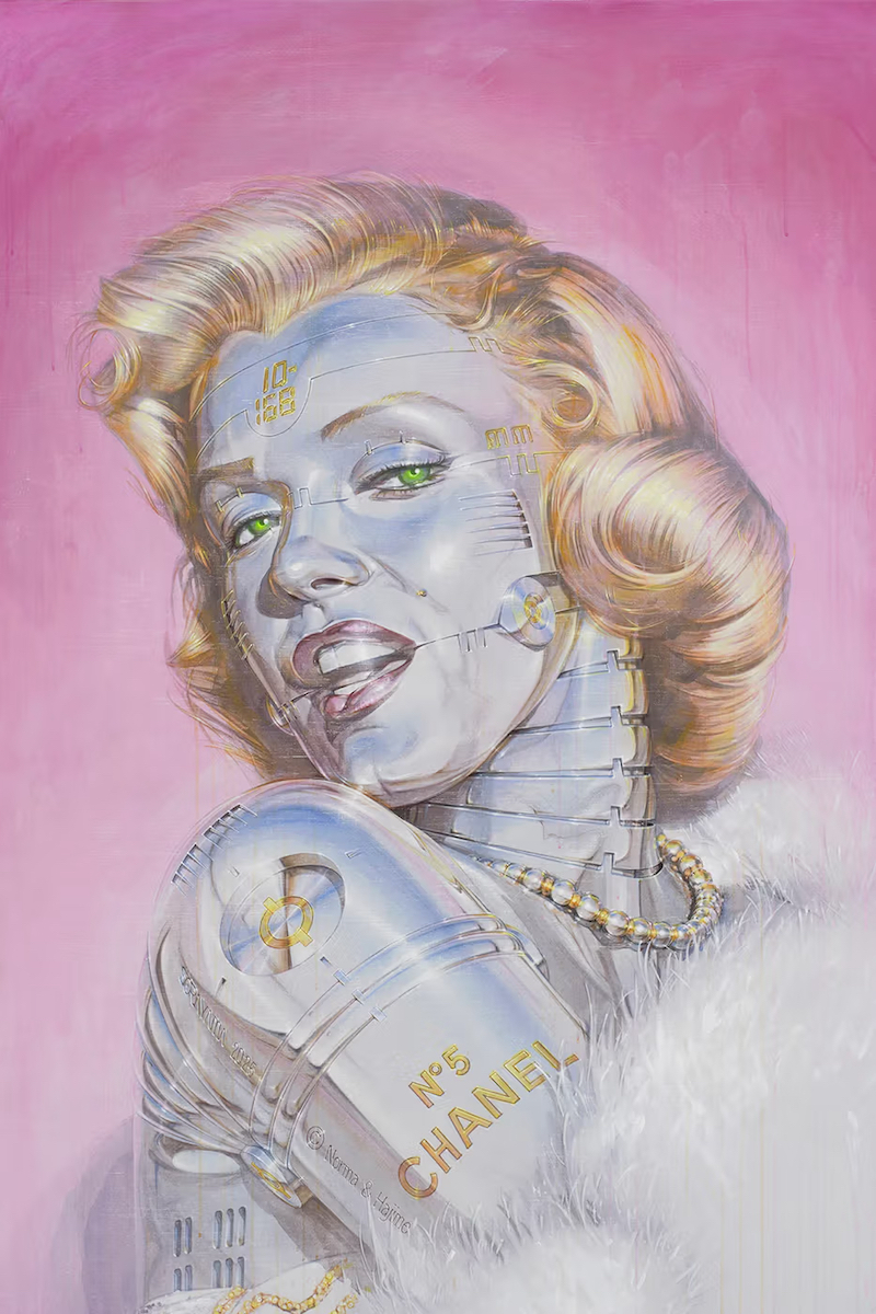 #3 Hajime Sorayama, Untitled (2023) Acrylic, digital print on canvas