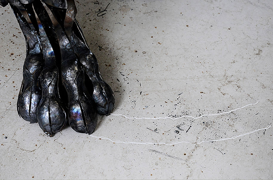 The work is combined from almost 4,000 pieces of scrap metal that Yilmaz hand-cut and hammered all by himself. As the artist commented the work on DeviantArt, what creating a metal sculpture requires the most is great patience and tolerance to the occasional pain.
