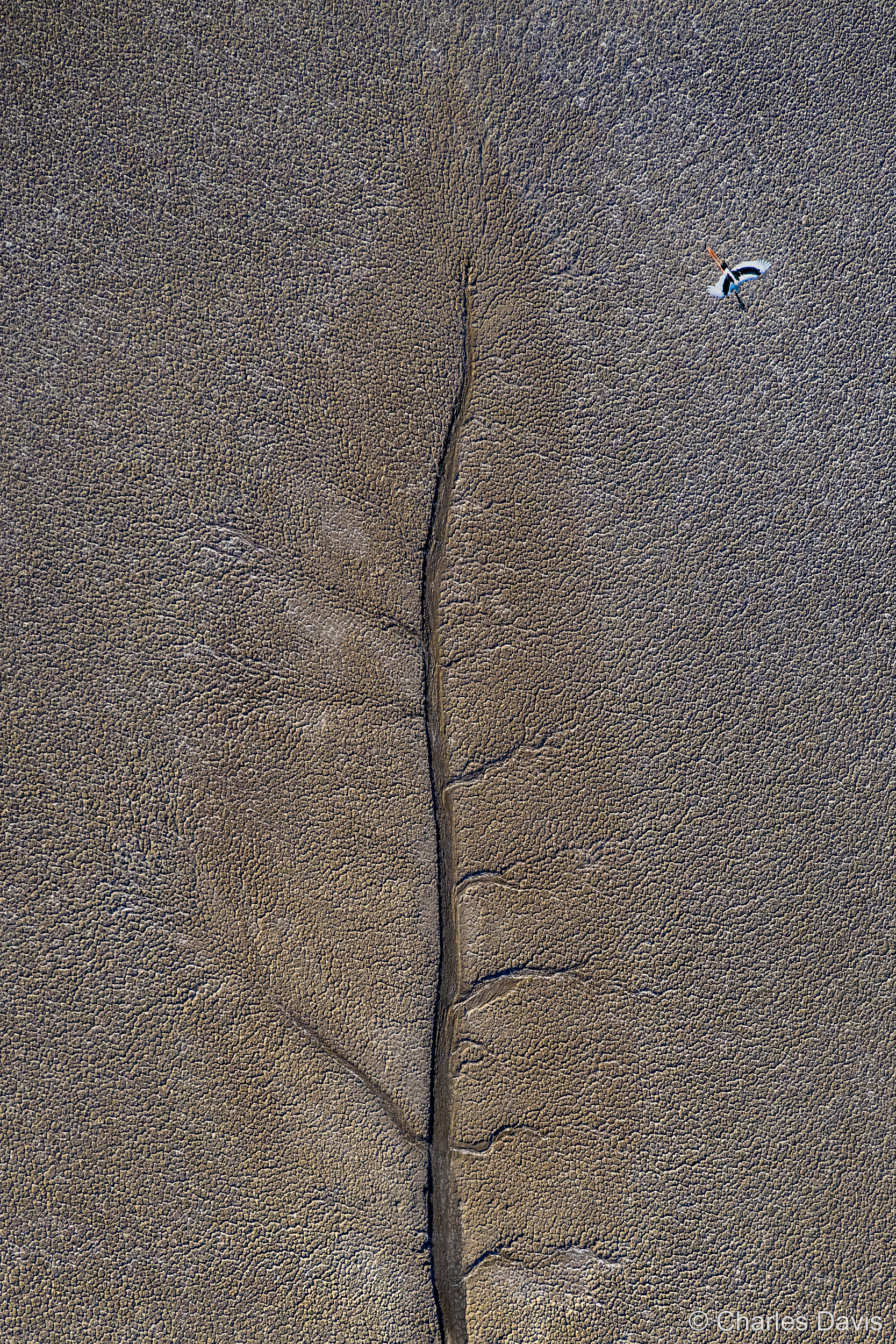 “This is not a dead leaf; it is a result of massive tides retreating over mudflats. I thought of a dead tree and a bird as we flew over the flats in the chopper. As this black-necked stork flew towards the drainage, we banked hard just in time to capture them together.” – Charles Davis