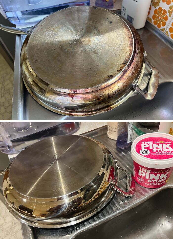 #26 Cuisineart Pan With 10 Years Of Build Up – Before And After I Used The Pink Stuff