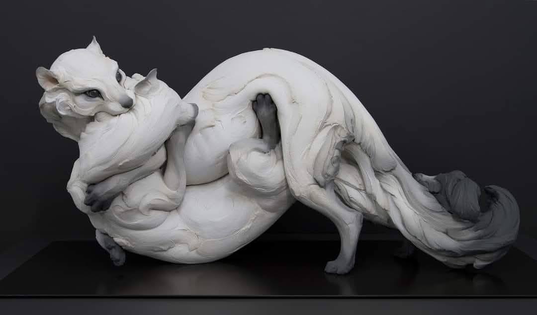 Depicting the intricate beauty of human nature, Beth Cavener’s mythical animal figures are infused with emotion, playfulness, and mystery. As a renowned American installation artist, she channels profound feeling into each sculpture, eliciting strong psychological responses from viewers. Cavener’s monumental vision is made possible by steel frames that support heavy clay structures. Each pose is carefully constructed, often uncanny in its precision. Rather than simply animals, her sculptures act as raw, visceral embodiments of human emotions, resonating through gestures, texture, and powerful forms. The pieces connect deeply with viewers, revealing strength, vulnerability, and the complex layers of connection.