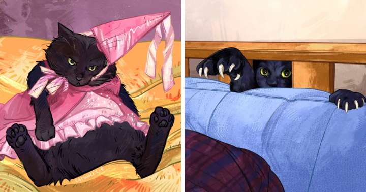 20 Times This Artist Perfectly Illustrated The Charm Of Black Cats