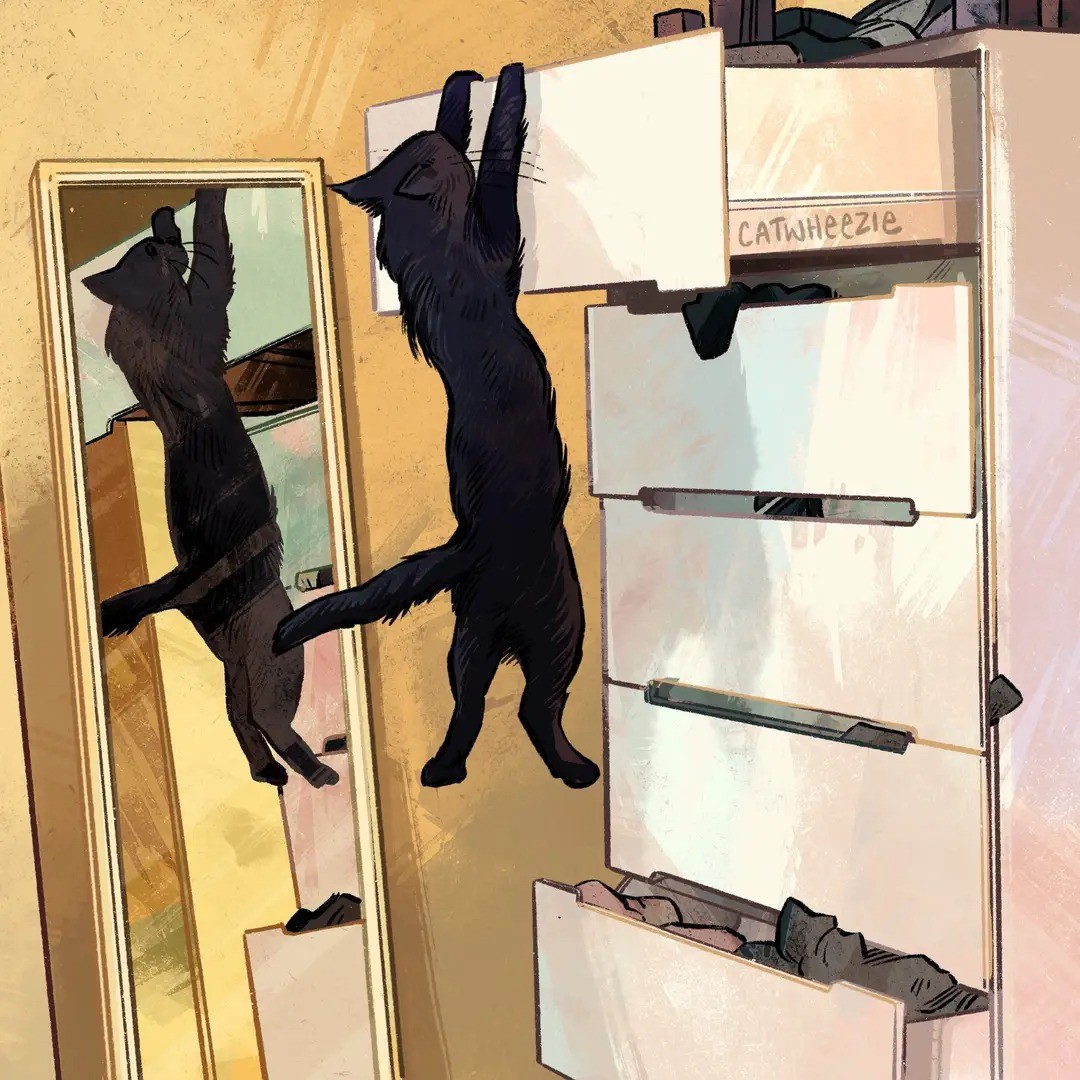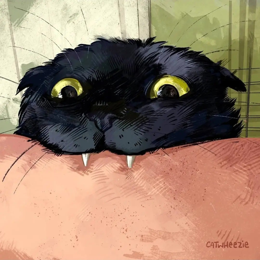 Black cats have long been wrapped in mystery, symbols of both superstition and charm, often misunderstood yet deeply loved by those who know their true magic. Artist @catwheezie captures this enchanting duality in the most adorable way possible, turning these sleek little voids into expressive, whimsical, and sometimes downright relatable characters.