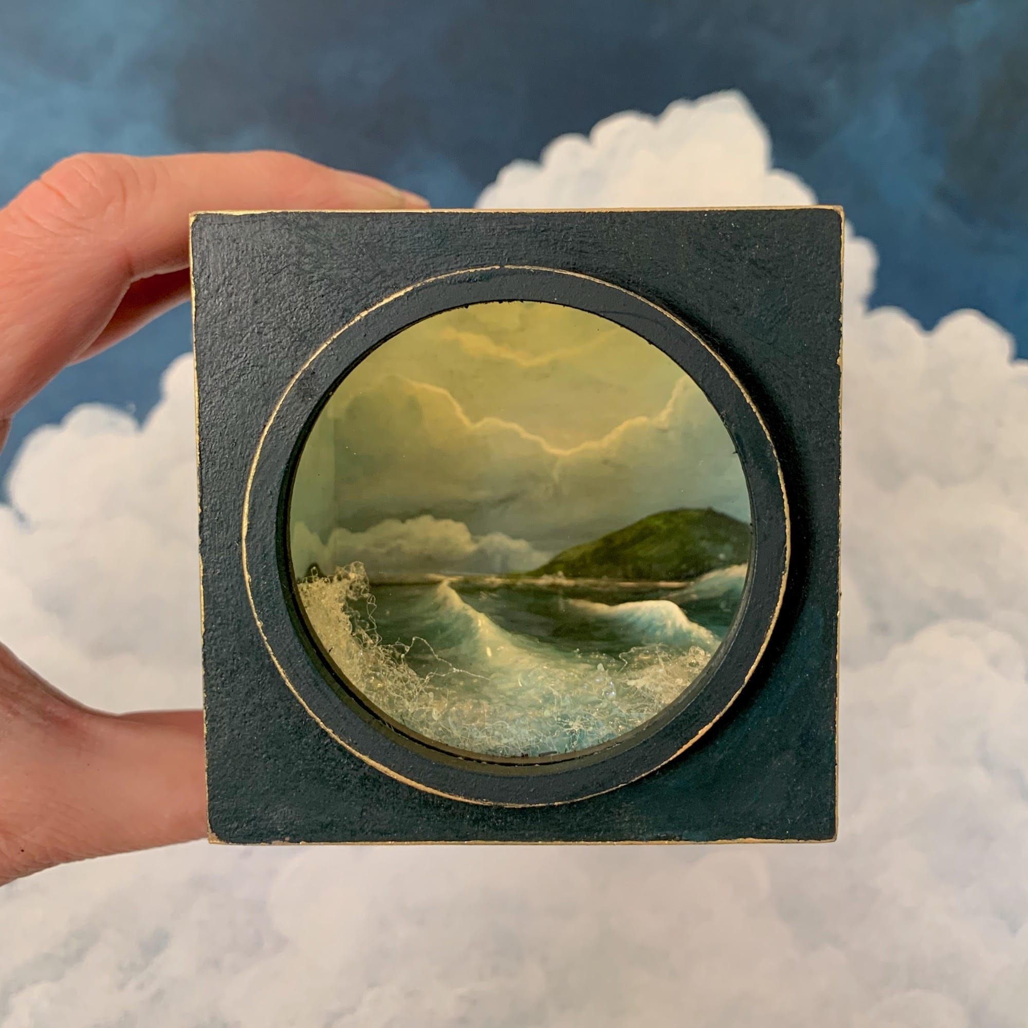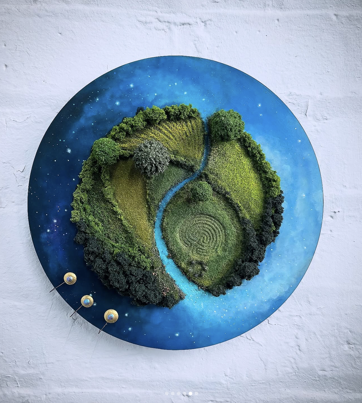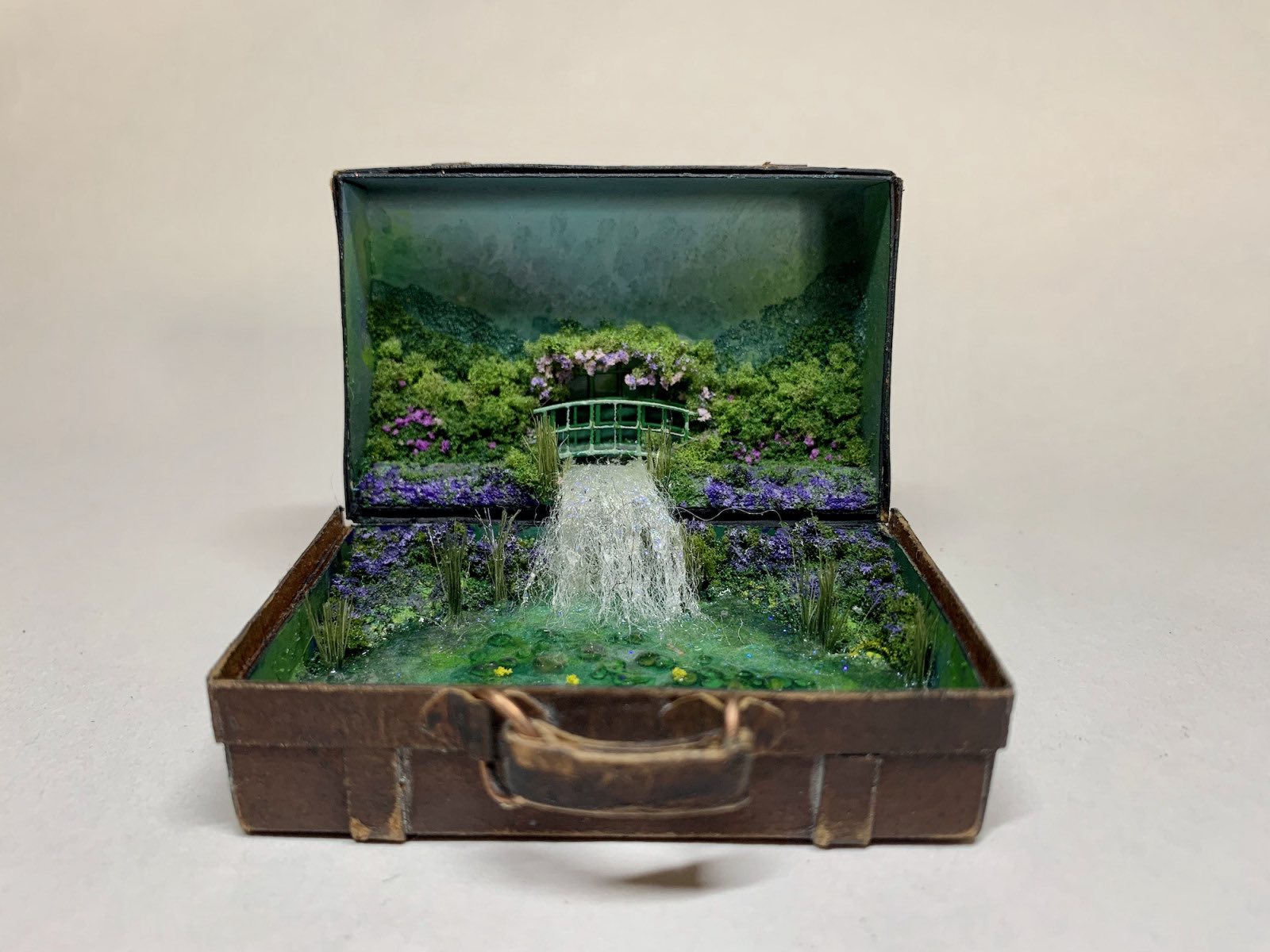 Her semi-clay dioramas feature fairies, vast landscapes, and lively oceans in intricate miniature detail. Dewison combines delicate brushwork, balanced colours, and Jesmonite—a mix of water-based acrylic resin and gypsum—to form each piece. She carefully selects small boxes, model-making tools, and vivid acrylic paints, finishing scenes with a 3D-printing pen. Every composition offers viewers a chance to see her mastery of technique, paint, and mixed media in these tranquil, tiny worlds.