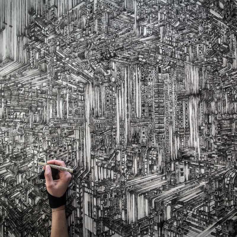 Artist Creates Complex Pencil Sketches Referencing Science Fiction And Architectonics