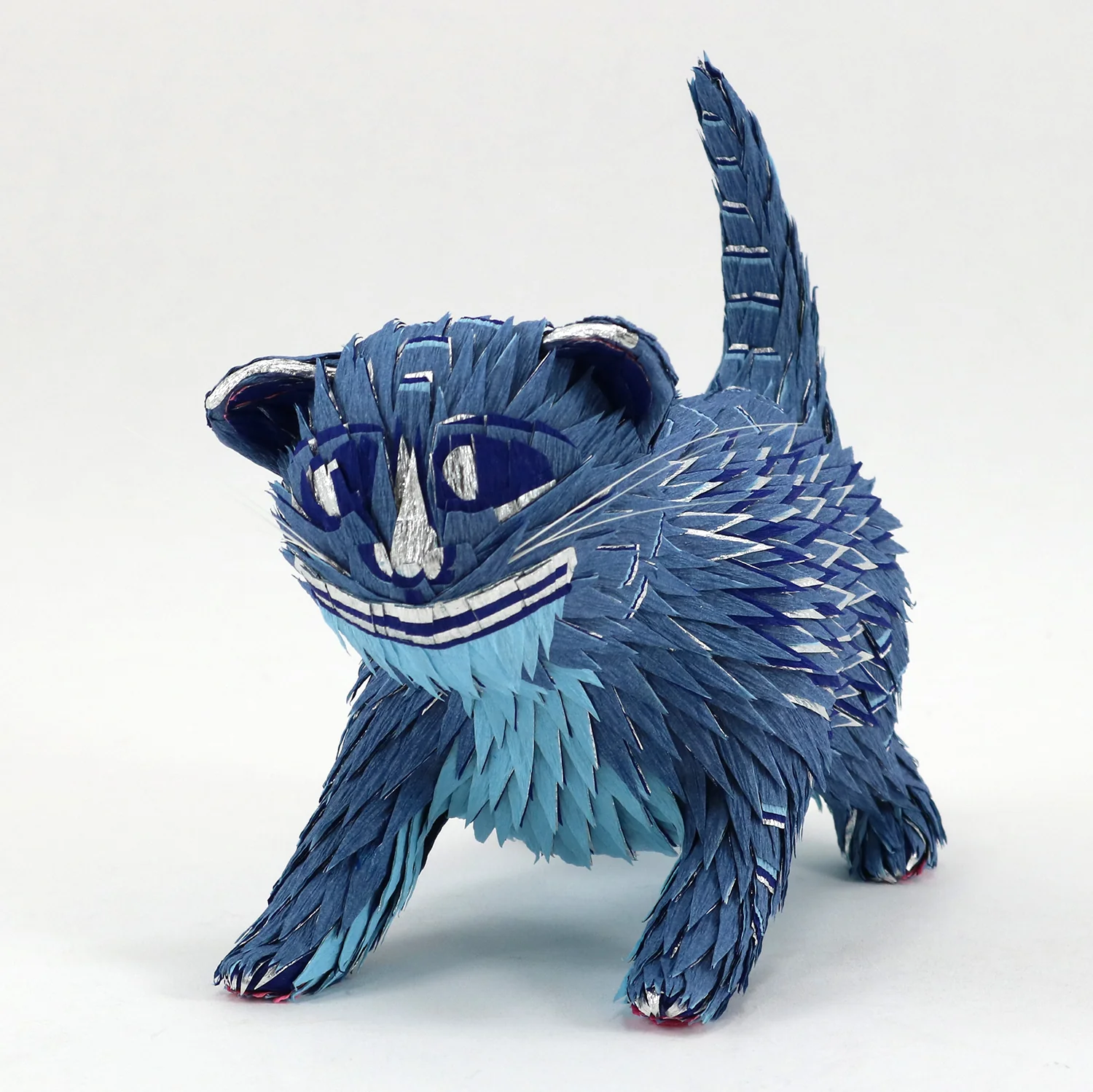 #1 Roberto Benavidez, “Medieval Kitten” (2025), paper, paperboard, wire, glue, crepe paper, fallen cat whiskers, 5.5 x 6 x 3 inches