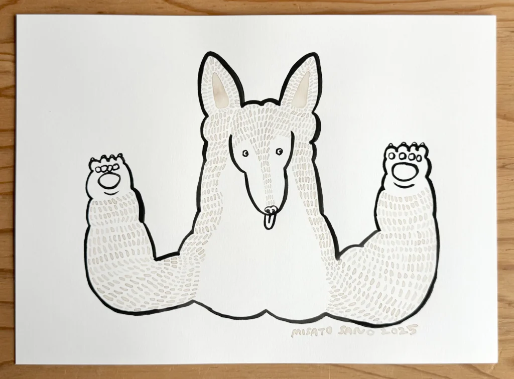 #8 Misato Sano, “It was about this big!” (2025), acrylic gouache and walnut ink on drawing paper, 11 × 14 inches (framed)