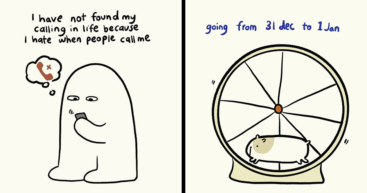 Some artists draw what they see, but Yen, the creator behind “quietly.doodling”, draws what we all secretly think. Their doodles are simple, cute, and disarmingly accurate, turning everyday feelings into charming little characters that feel like they crawled straight out of our own minds.