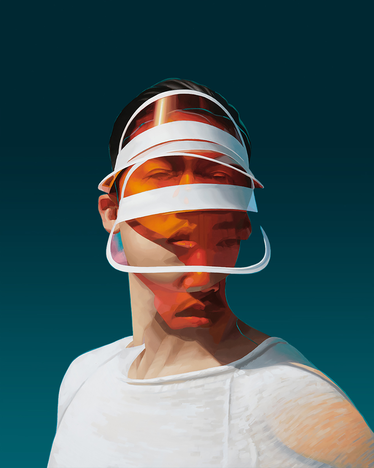 Light Gleams Off Shiny Blankets Wrapping David Rice’s Subjects In Latest Paintings