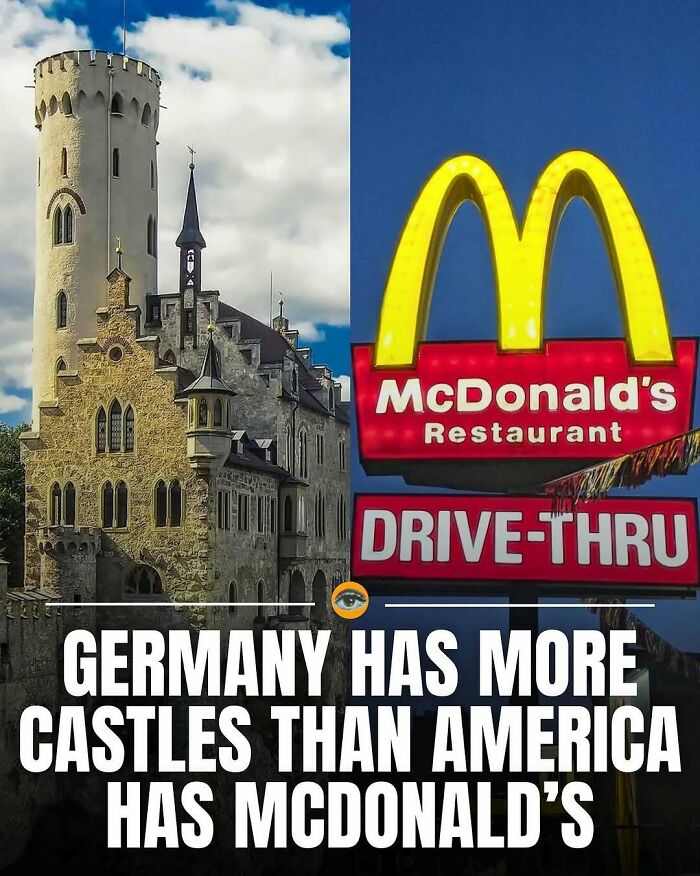 Germany has more castles than the U.S. has McDonald’s. With over 20,000 castles spread across the country, Germany is home to one of the richest collections of historical architecture in the world. From medieval fortresses to storybook palaces, these structures are woven into the landscape. For perspective, the United States has around 13,500 McDonald’s locations. That means Germany, a country 27 times smaller, has thousands more castles than the U.S. has fast food chains. It is a powerful reminder of how deeply history, culture, and craftsmanship are rooted in the German landscape.