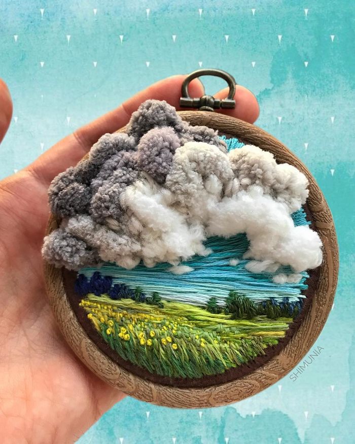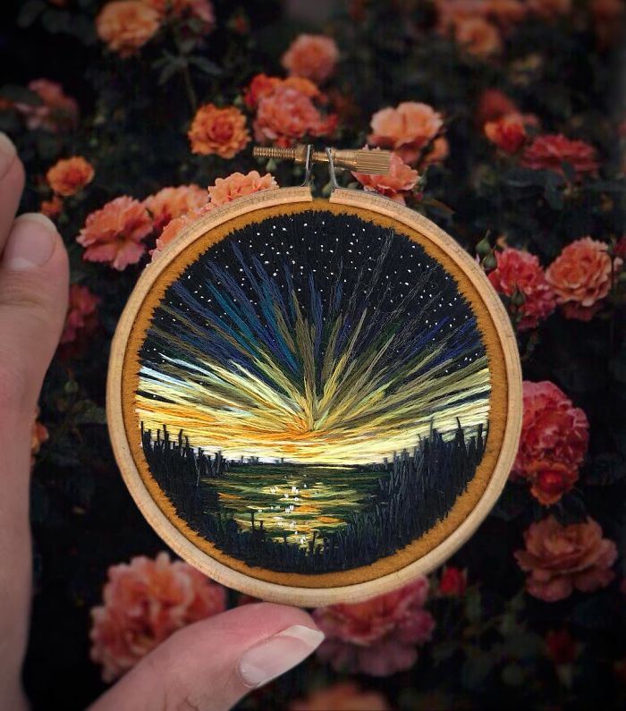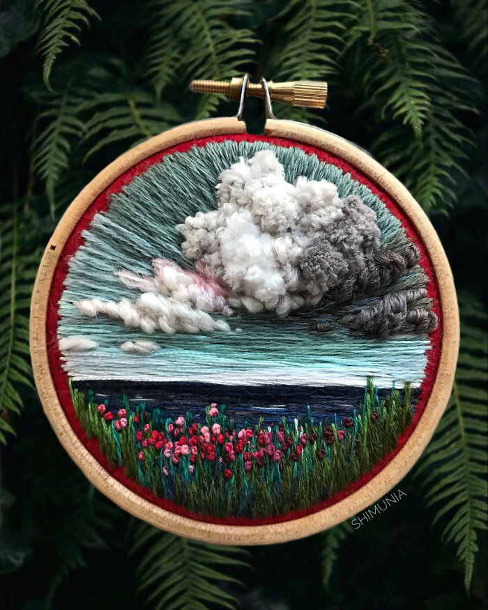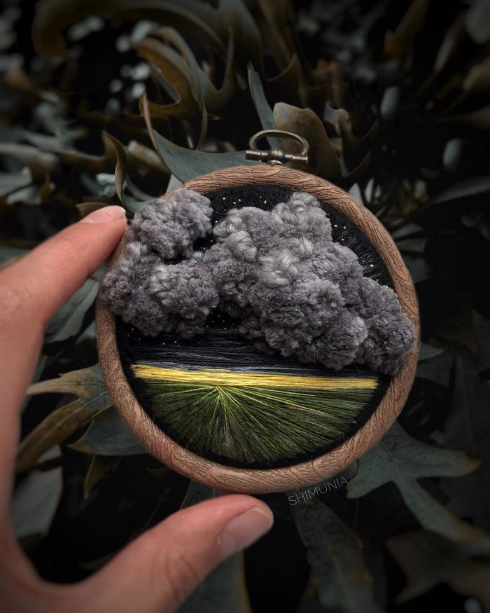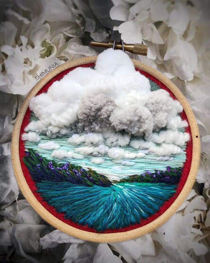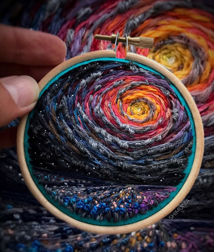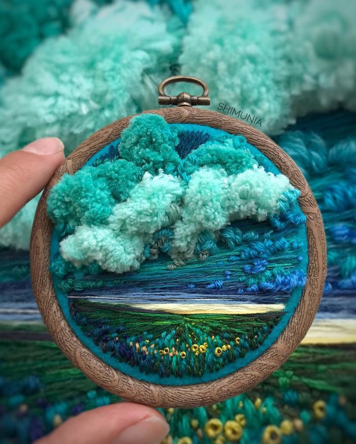 Some artists paint with oils or watercolors, but Vera Shimunia paints with thread. Her embroidery pieces burst with color, depth, and texture, often looking more like vivid landscape paintings than stitched fabric. What began as a simple experiment quickly turned into a passion. “I just decided to try. And when I made my first embroidery pattern, the boy I liked, he has great taste and he is in the art community, wrote me: ‘you did this?? So cool’ and I decided to continue,” Shimunia told us in an interview.