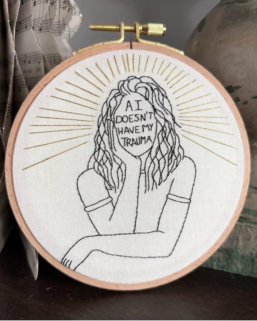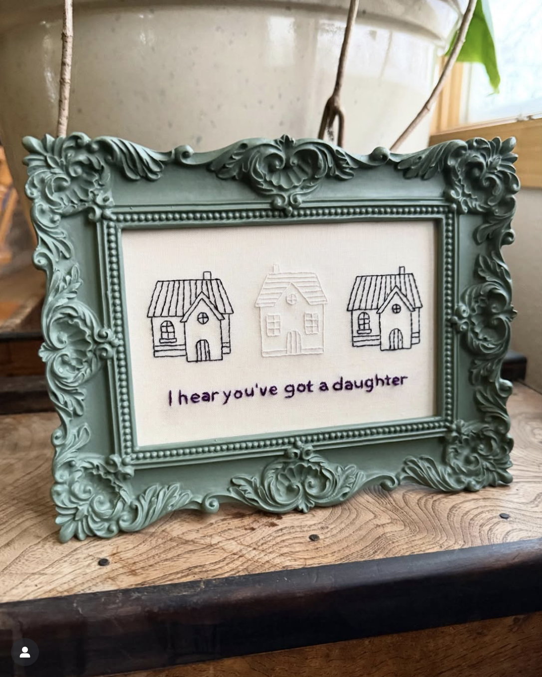 Embracing her millennial sense of humour and Victorian-era stitching talents, Laney Boyd has created a whimsical brand of embroidered pieces. This playful artist laughingly explained how stitching has quickly become her entire personality since she discovered it in 2020. During the pandemic, she needed to keep her hands busy instead of doomscrolling. When two friends posted photos of their latest embroidery projects online, the methodical and mindful process caught her attention. She ordered her own kit and, from her very first stitch, she admits she was hooked.