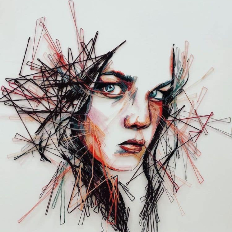 Each piece has a playful element, and Boyd says most of her work is inspired by the things she loves. With a degree in classical music, she often emulates the look of music sheets in her pieces. More recently, her love of reading has led her to stitch on the covers of books she enjoys. Her loving family also inspires pieces based on memorable phrases or interactions she shares with them. Under the moniker “Thistles and Threads,” Boyd has experimented with many stitching designs that continue to impress and delight fans of her work.