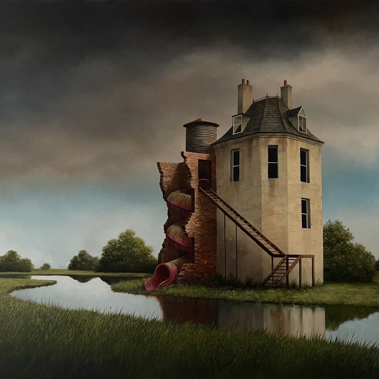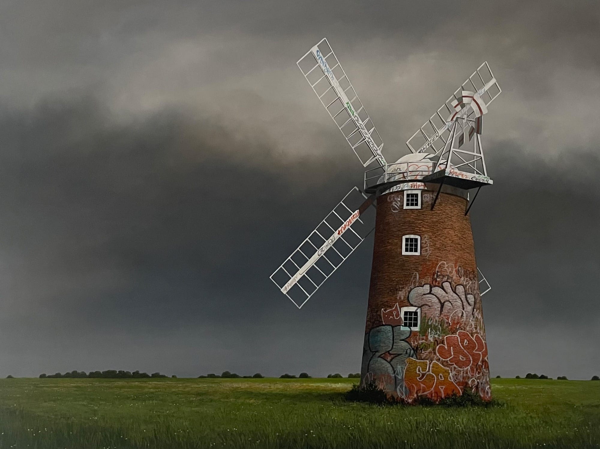 Talking about why he gravitates toward such desolate subjects, Madgwick explained: “I’ve always been drawn to abandoned and isolated places, and I enjoy the mystery that surrounds them. Buildings that are overlooked in our towns and cities stand out to me, and so giving them a new setting and brooding skies helps to create a certain mood. Artists like Caspar David Friedrich, Jacob van Ruisdael, Hopper and Wyeth have inspired me over the years.”