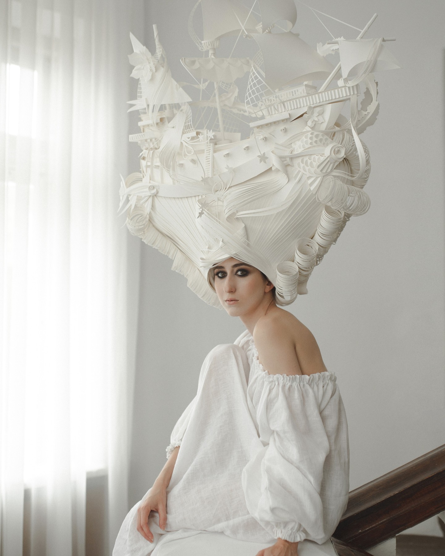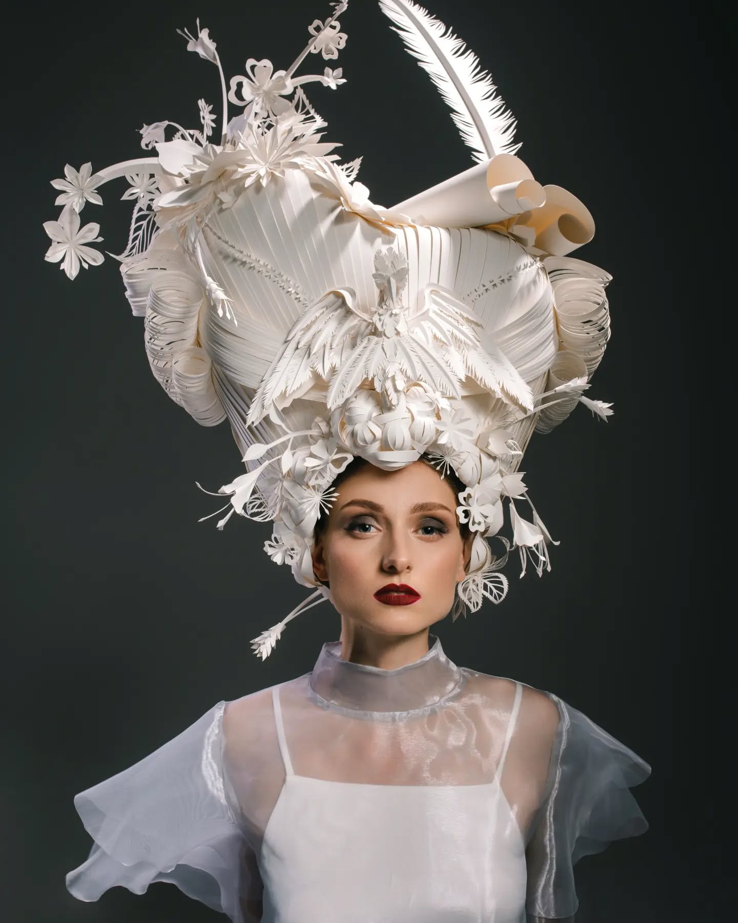 As her wigs are made entirely of paper, they blur the line between fragility and strength. They’re not wearable in a practical sense, but they make powerful statements about identity, beauty, and art. Kozina further elaborated, “From the beginning of my studies at the university, I got acquainted with new forms of artistic expression of paper with its plastic possibilities and in 2007, I opened my first personal exhibition in an art museum. Since then, I have worked on the orders of art curators for museums, theaters, operas, for a fashion house, made my own creative projects, and created objects for the interiors of cruise ships. I have worked with plain paper, wallpaper, synthetic paper, colored paper, and rolled paper. Today, my favorite is synthetic paper, which is snow-white, comfortable, thick and durable.”
