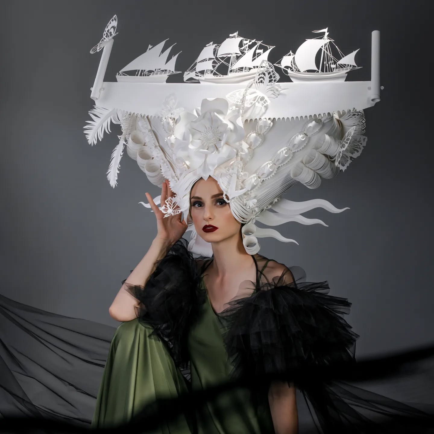 In an interview with DeMilked, the artist revealed, “Each wig is an individual special story that begins with a research to find symbols and meanings that you want to put in the future image. Some wigs take a lot of time to prepare for a sketch, sometimes it is a study of the history of shipbuilding, sometimes symbols of the Baroque era, sometimes architectural objects or styles, because there are no accidents in my work, it is always an interesting story that can be read and told.”