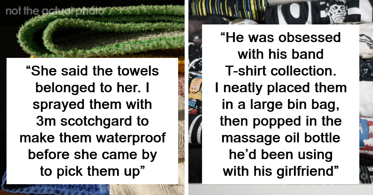 Okay, this is going to sound cruel, but hear me out. After he cheated, I was in a rage and was going to throw all his belongings from my place in the garbage. My friend encouraged me to set them on fire, but I had a better idea. I live in a city where he also lives and works within the same few blocks. A lot of the homeless folks are familiar and tend to stick around their common areas of our blocks.