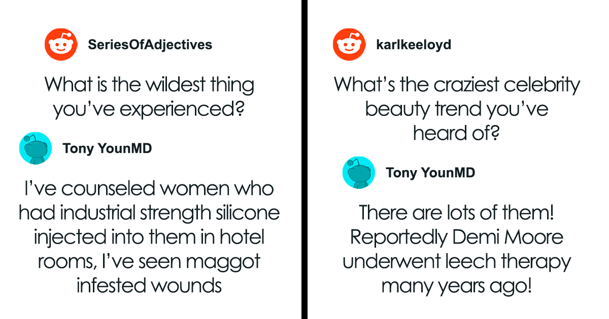 This shows what’s possible in the hands of talented surgeons. As more and more people opt for Botox, fillers and silicones, we decided to dig deeper into plastic surgery. Conveniently, a few plastic surgeons recently hosted an Ask Me Anything (AMA) online, encouraging people to submit their burning questions. The response was enthusiastic, and we’ve gathered the best answers to share in the gallery below.