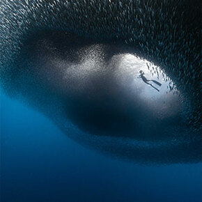 2nd Place / Nature/Environmental / Editorial Description: “Captured in October 2024 in Indonesia, this image shows a local fisherman’s net where three small sharks were caught as bycatch. Attracted by anchovies, the main catch, a whale shark already injured (most probably by a boat propeller), approached but avoided contact. With 100 million sharks killed annually, mostly for fins or bycatch, this whale shark faces its own grim future—brutally killed for human luxury, ignoring the catastrophic impact on our oceans and the survival of humanity.”