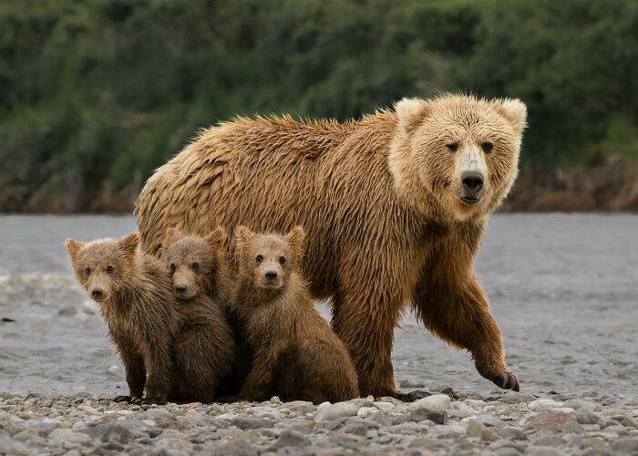 “This bear family in Alaska gave me only a few seconds to take a family photo for them. And they never told me where to send the photo to, nor did I dare to ask.”