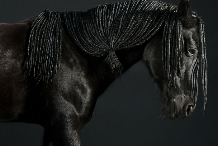 “Beyond the Echo of Their Gallop revives the splendor of retired racehorses and cinematic horses. Through adornment and portraiture, their resilience and beauty transcend time, reminding us that glory need not fade—it simply waits to shine again.”